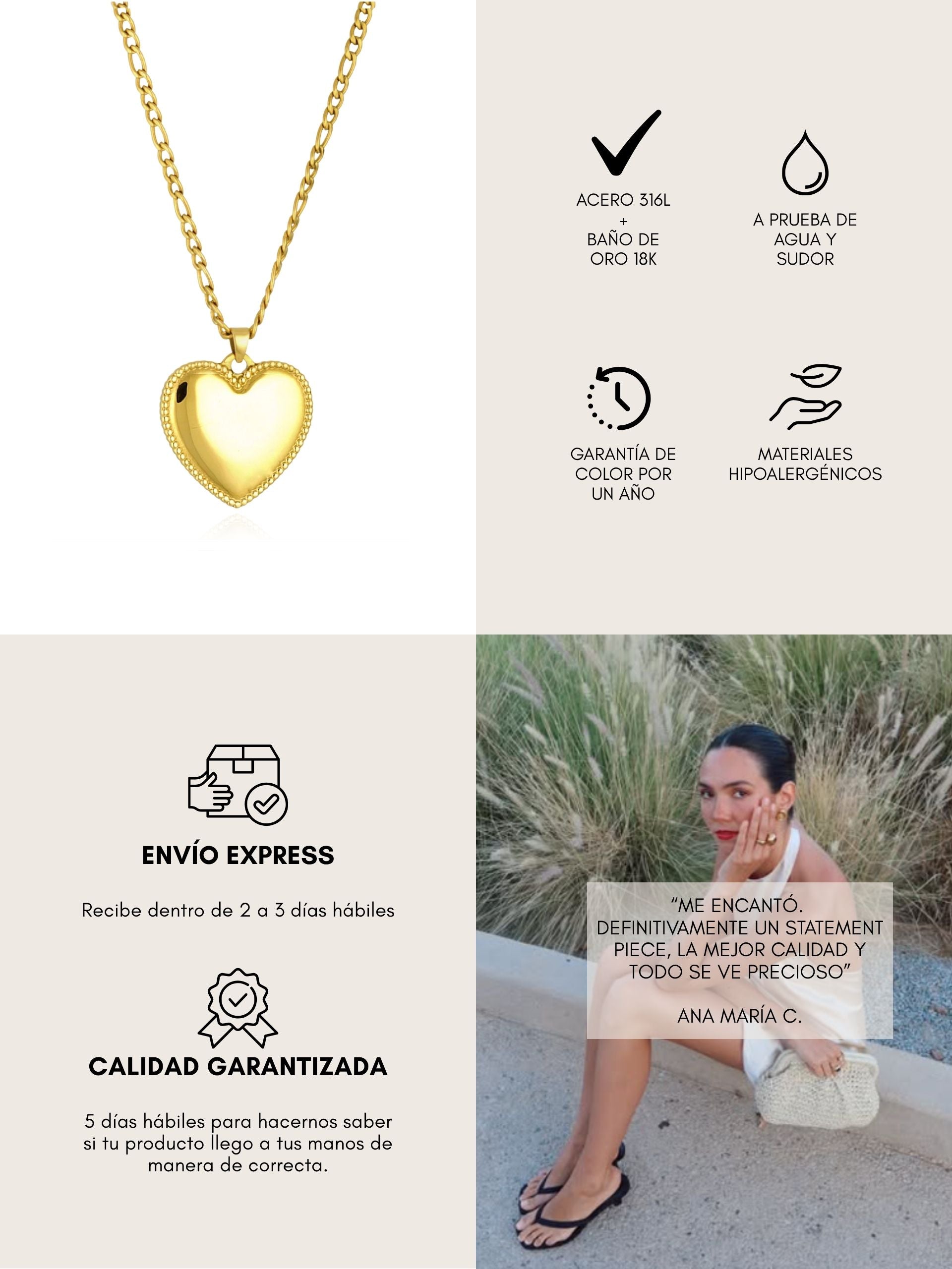 Todas nuestras piezas son de acero inoxidable resistente al agua, diseñadas para acompañarte todos los días sin perder brillo ni color.