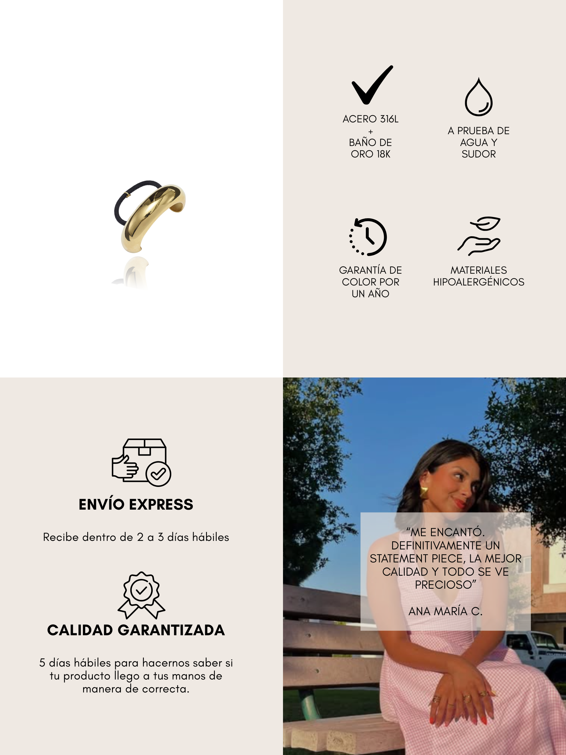 Todas nuestras piezas son de acero inoxidable resistente al agua, diseñadas para acompañarte todos los días sin perder brillo ni color.