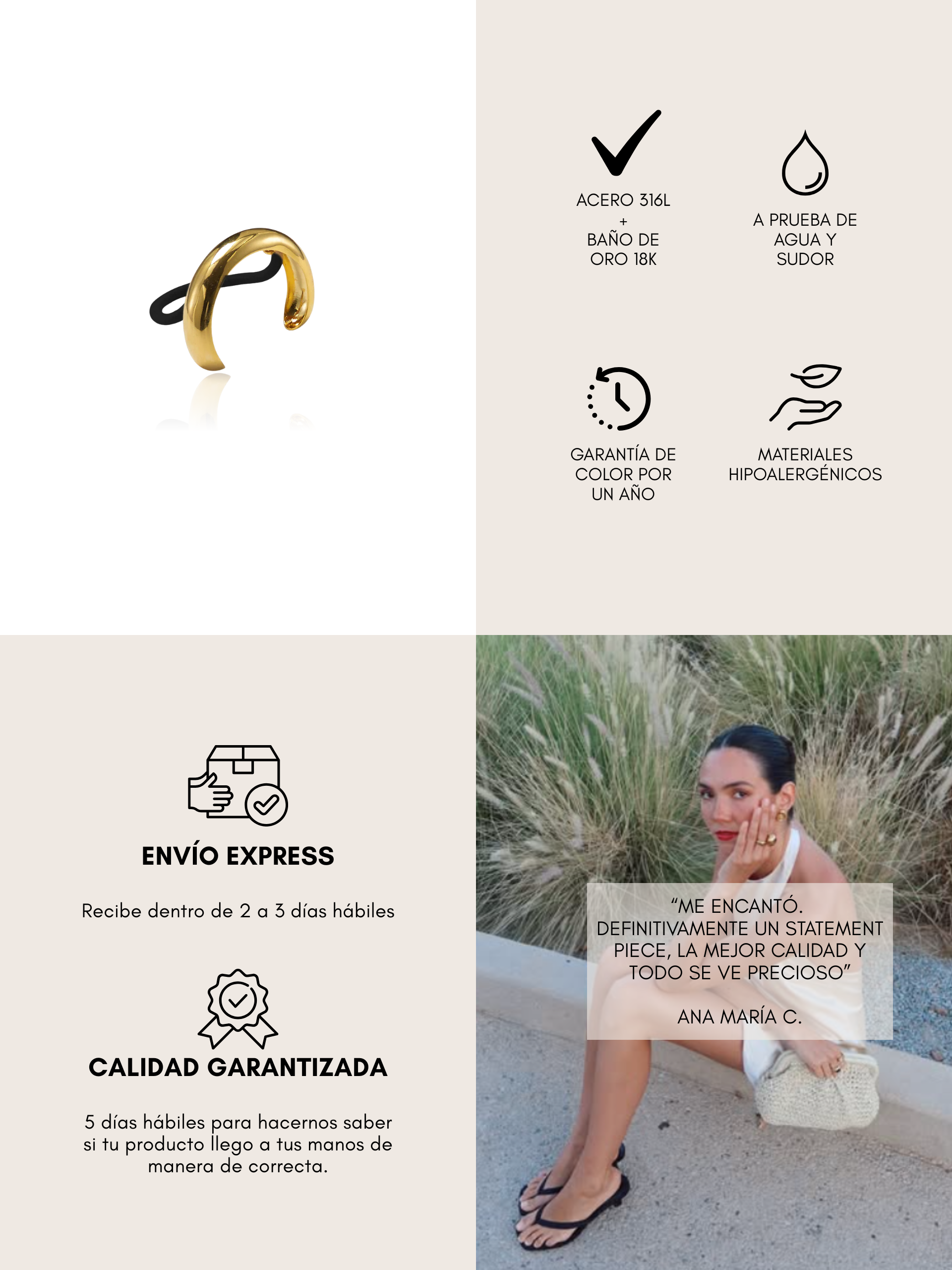 Todas nuestras piezas son de acero inoxidable resistente al agua, diseñadas para acompañarte todos los días sin perder brillo ni color.