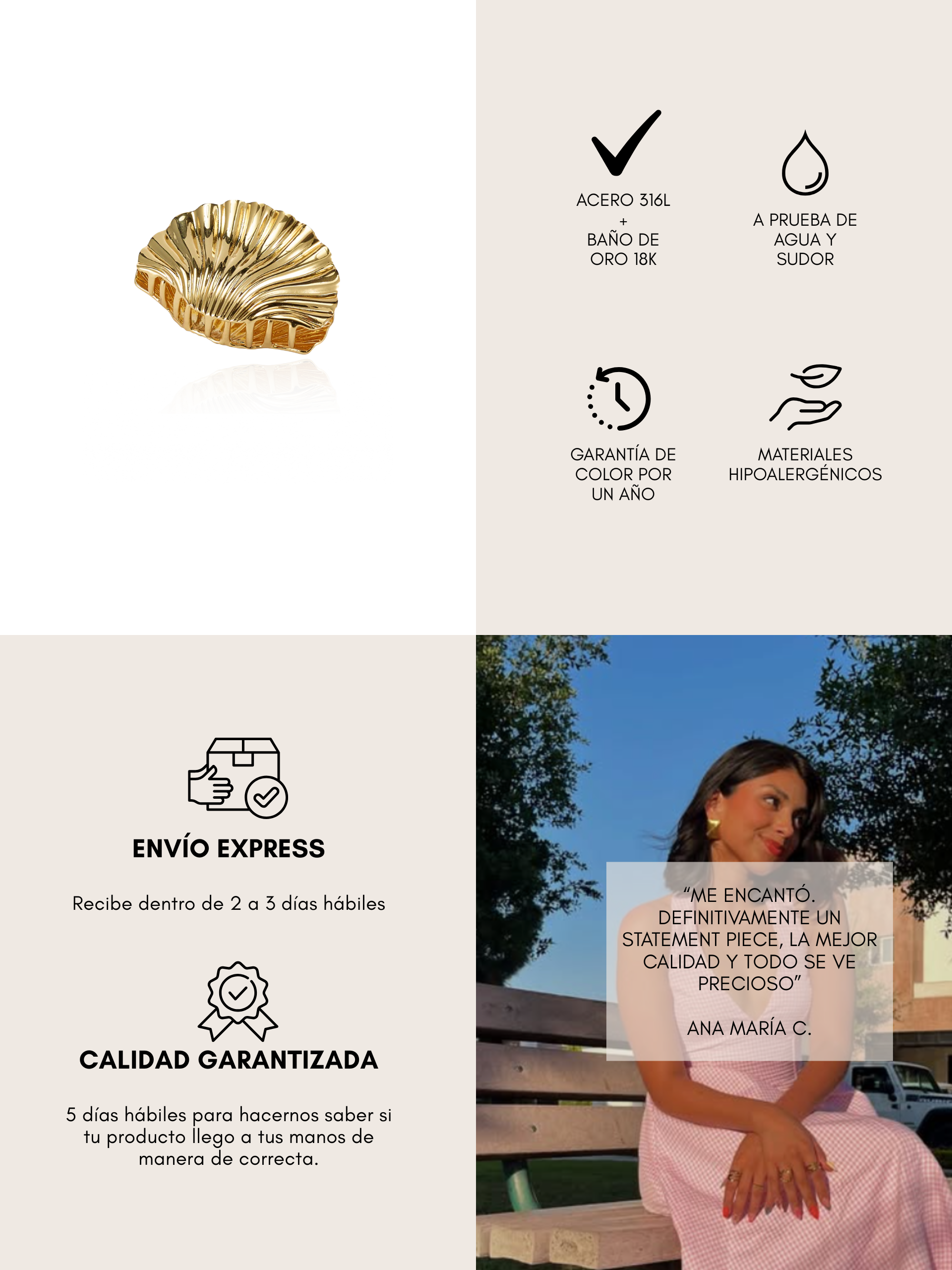 Todas nuestras piezas son de acero inoxidable resistente al agua, diseñadas para acompañarte todos los días sin perder brillo ni color.