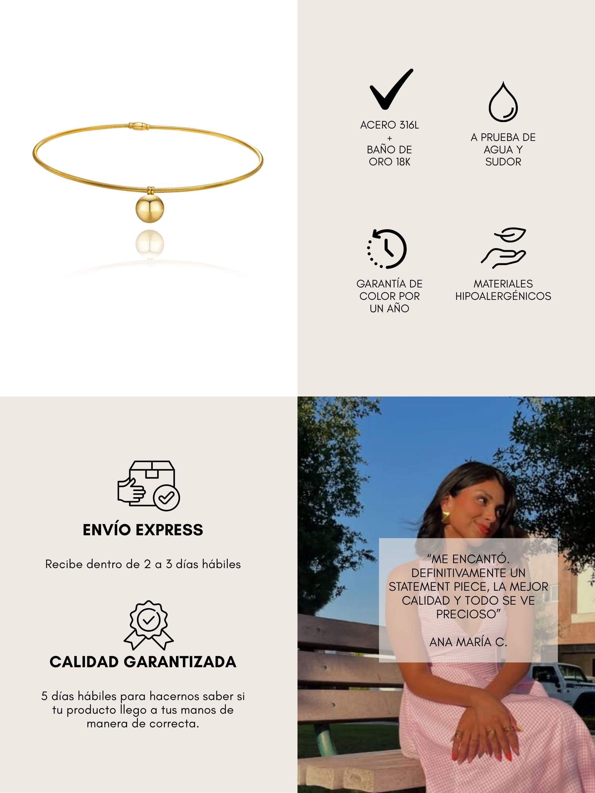 Todas nuestras piezas son de acero inoxidable resistente al agua, diseñadas para acompañarte todos los días sin perder brillo ni color.