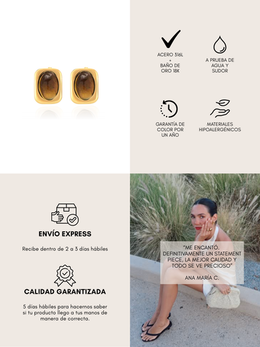 Acero 316 L con baño de oro 18 K, resistentes al agua y al uso diario.