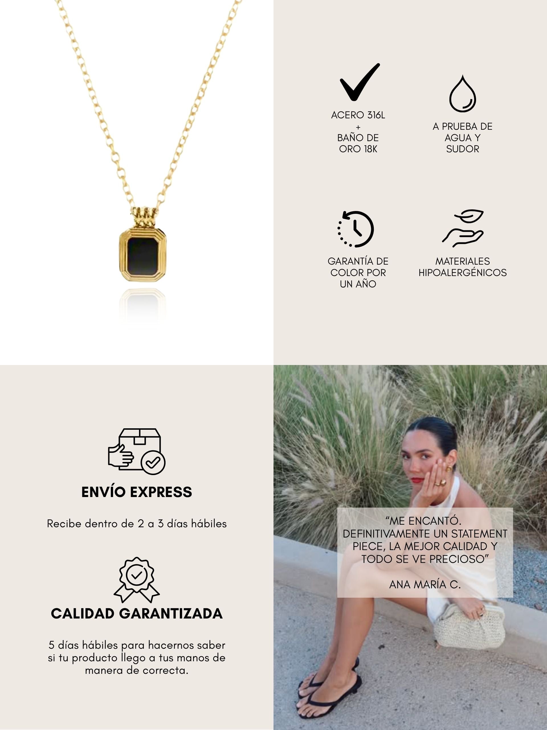 Todas nuestras piezas son de acero inoxidable resistente al agua, diseñadas para acompañarte todos los días sin perder brillo ni color.