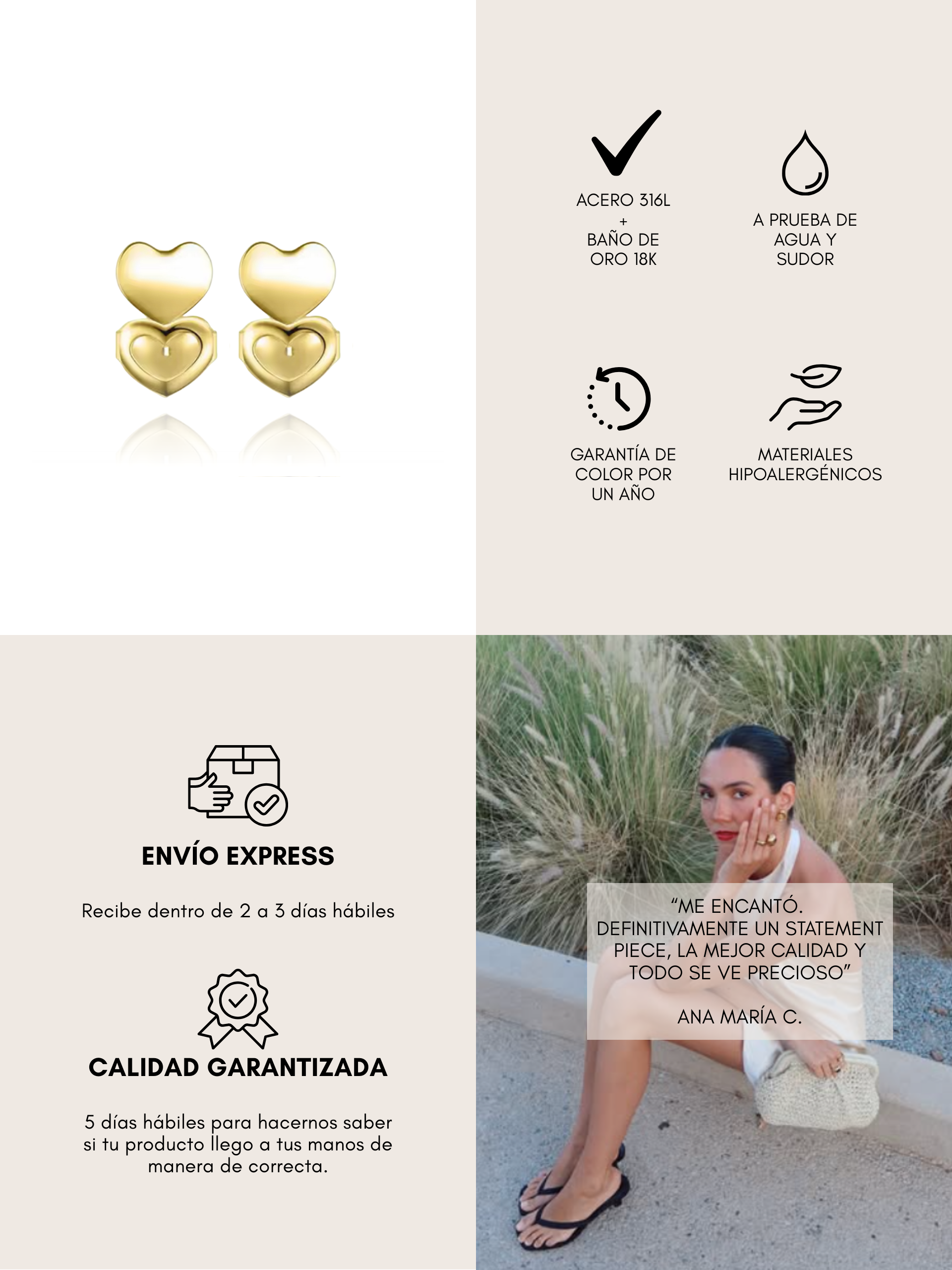 Todas nuestras piezas son de acero inoxidable resistente al agua, diseñadas para acompañarte todos los días sin perder brillo ni color.