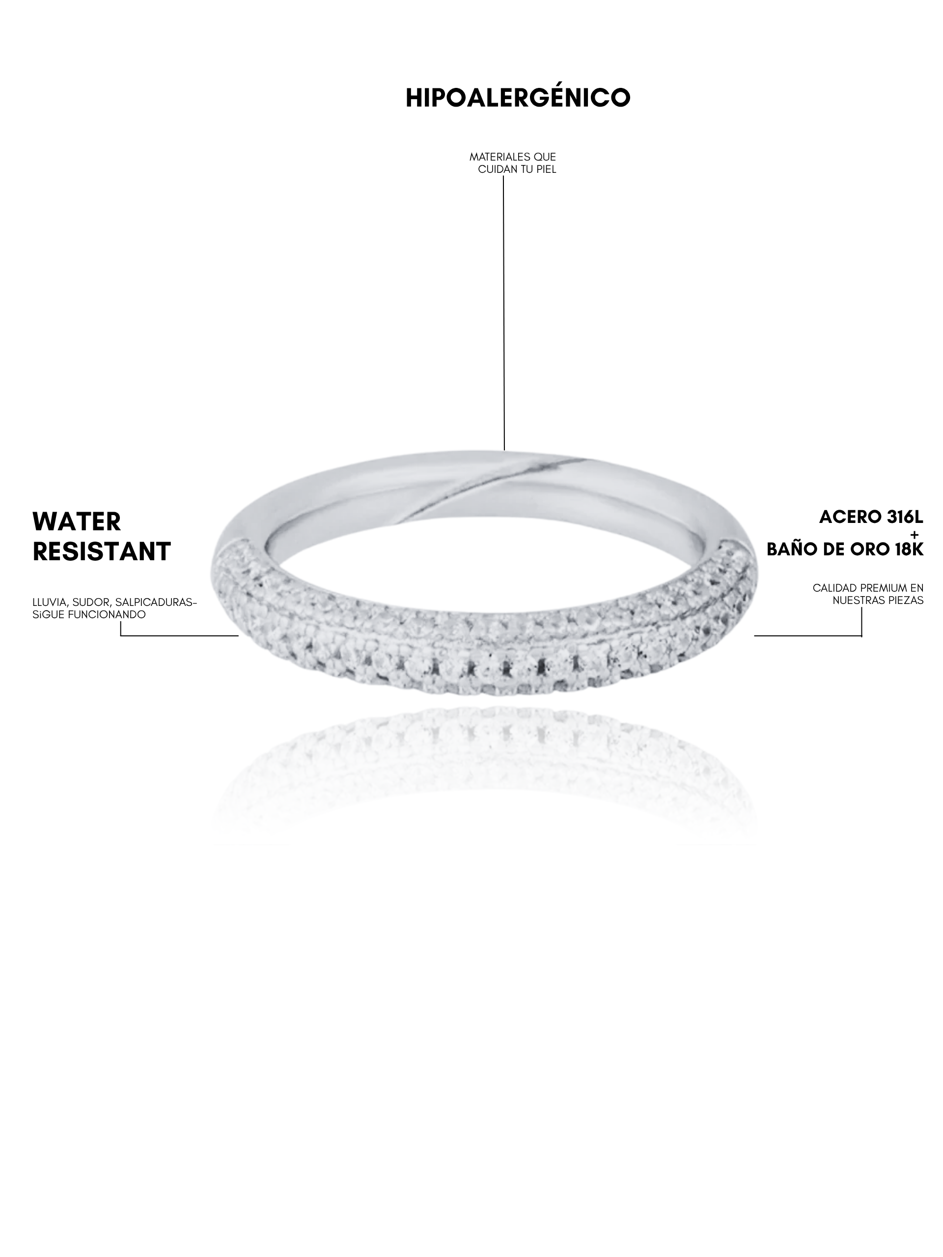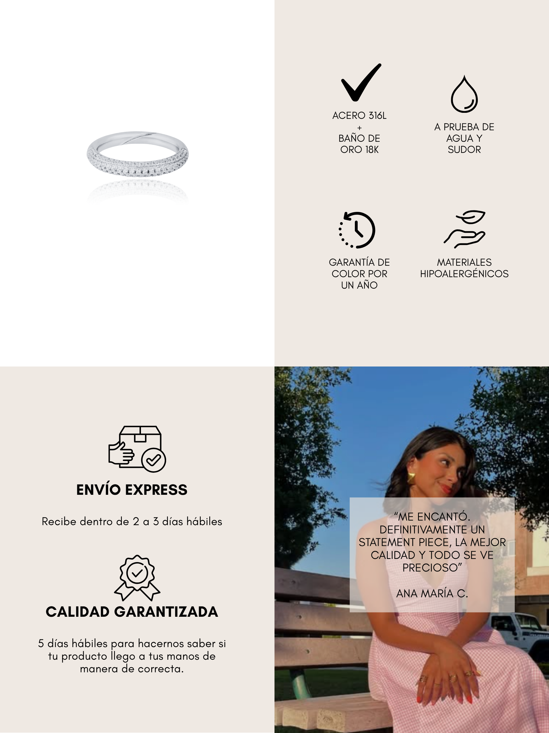 Fabricamos con acero quirúrgico 316 L y baño de oro 18 K. Resistentes al agua, sudor y vida diaria.
