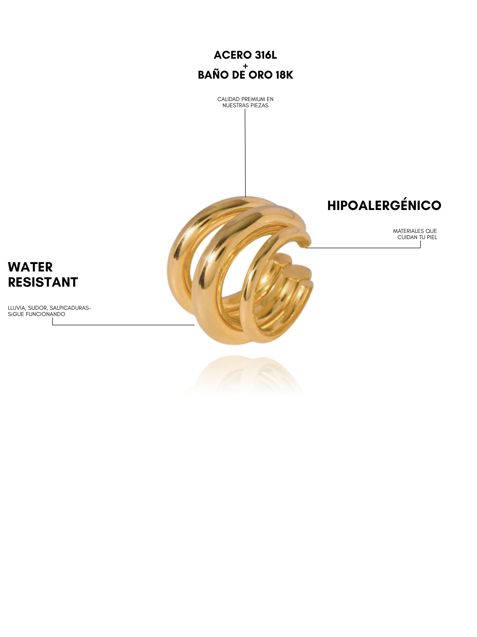 Acero 316 L con baño de oro 18 K, resistentes al agua y al uso diario.