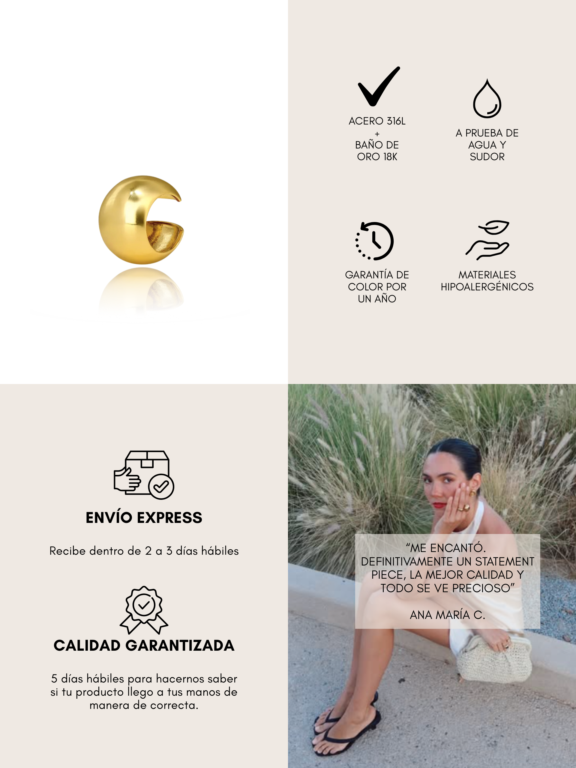 Todas nuestras piezas son de acero inoxidable resistente al agua, diseñadas para acompañarte todos los días sin perder brillo ni color.