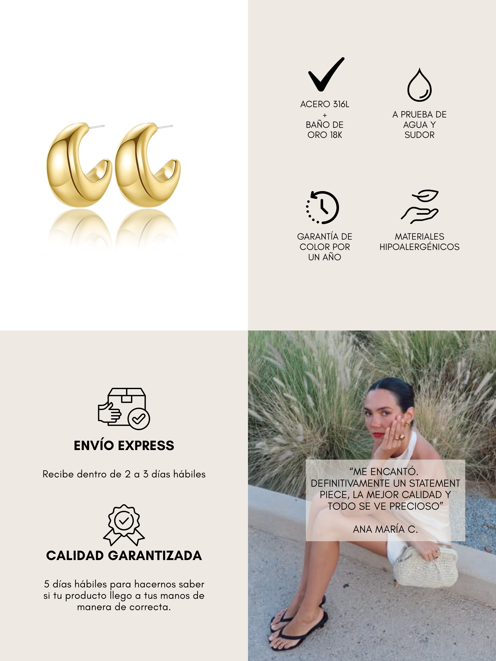Todas nuestras piezas son de acero inoxidable resistente al agua, diseñadas para acompañarte todos los días sin perder brillo ni color.