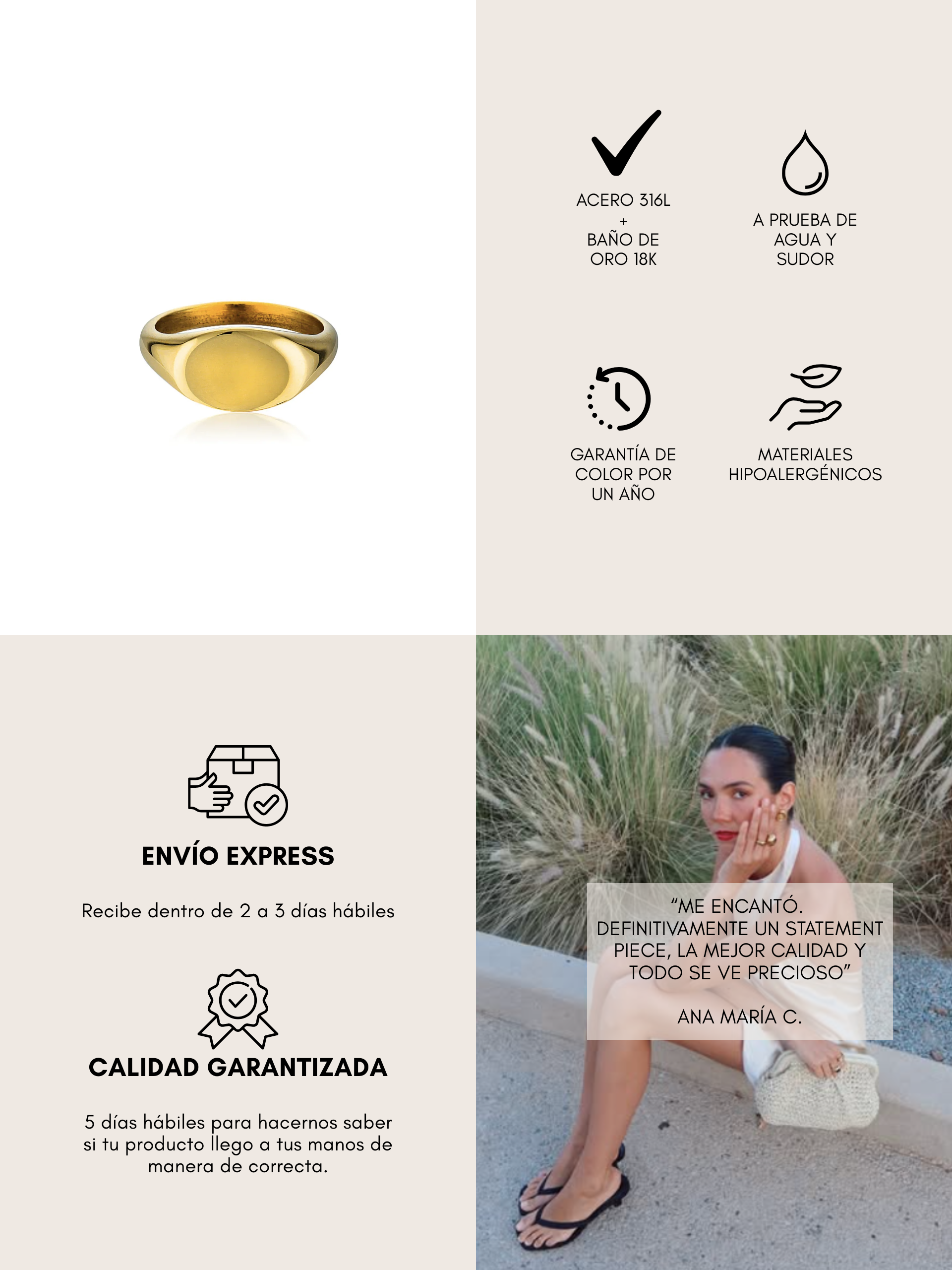 Fabricamos con acero quirúrgico 316 L y baño de oro 18 K. Resistentes al agua, sudor y vida diaria.